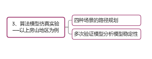 北京上方山地区道路规划较为单一,在不同的场景下的路径规划和选择比较依赖当地专家的经验知识。本文旨在针对北京上方山地区,基于GIS技术,选取上方山国家森林公园这一区域(下面简称上方山区域/上方山地区)作为研究区。依据该地区现有交通网络和空间分析,提取出上方山地区的综合交通网络并形成拓扑网络,并针对4种实际应用场景建立了4种网络分析模型,依据每一条道路的宽度、坡度、通行速度等各项参数,得到不同场景下的最优路径,并对其进行可视化展示。针对不同的场景设计不同的路径规划模型显著提高了传统道路选线方法的科学性和时效性,具备一定的参考价值。