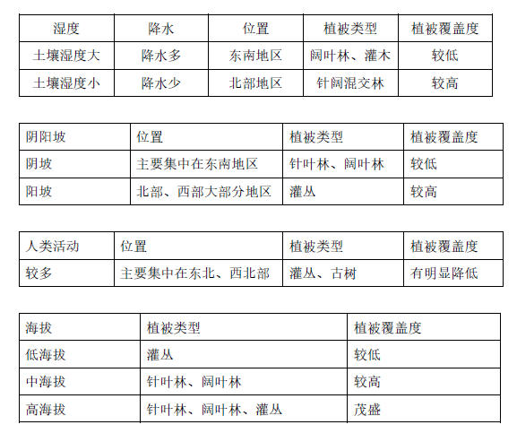 2.特殊的地理位置、地形、地质条件导致的降水量、阴阳坡、人类活动差异是上方山植物多样、特殊的主要原因。