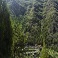 画中峰岭对峙,山溪乱流,野桥静卧,连属两岸。右岸峰岭重重,林木森森,覆于岩麓。左岸石怪峰险,摩天而上。一僧负篓而来,行将渡桥。