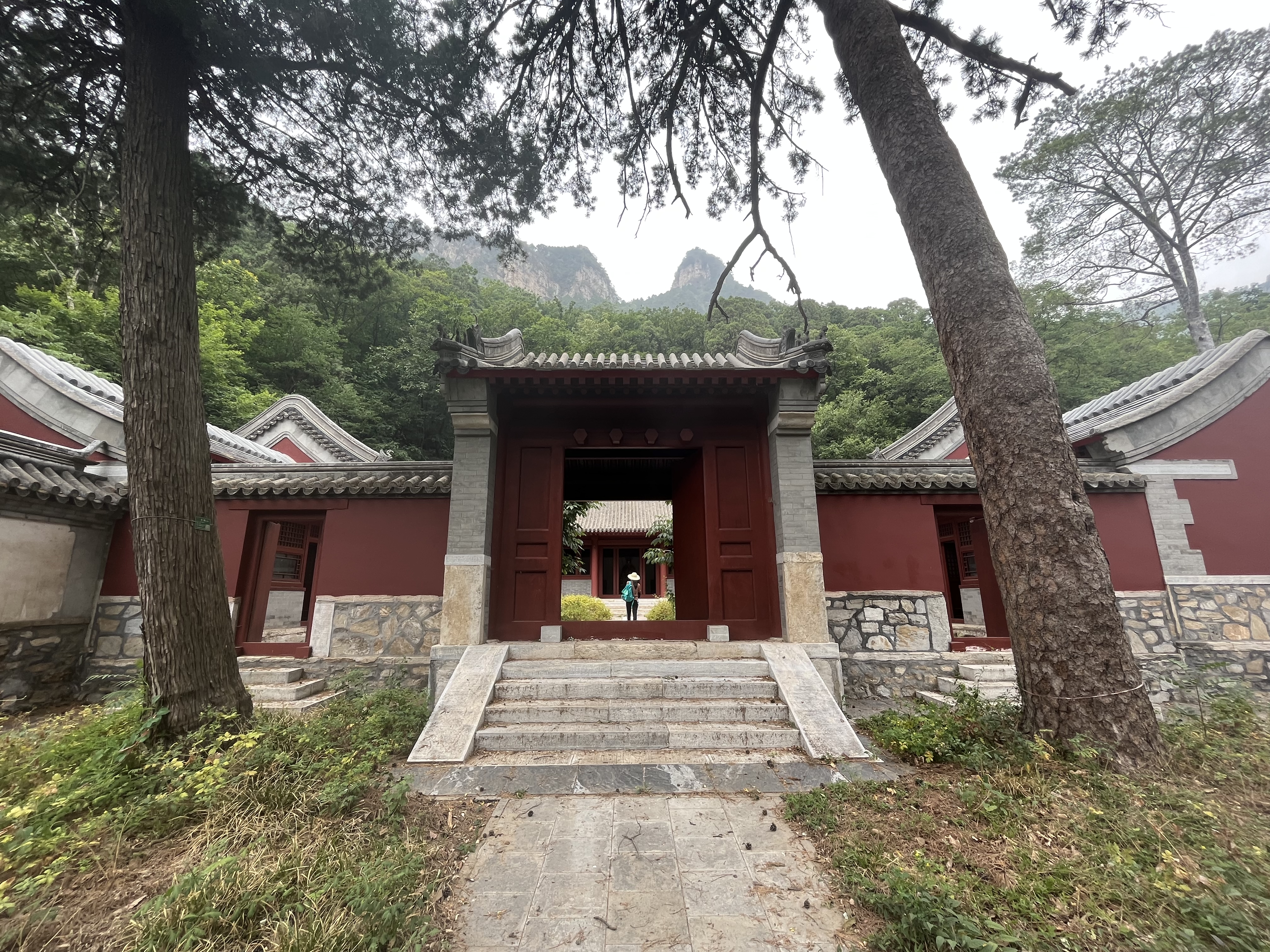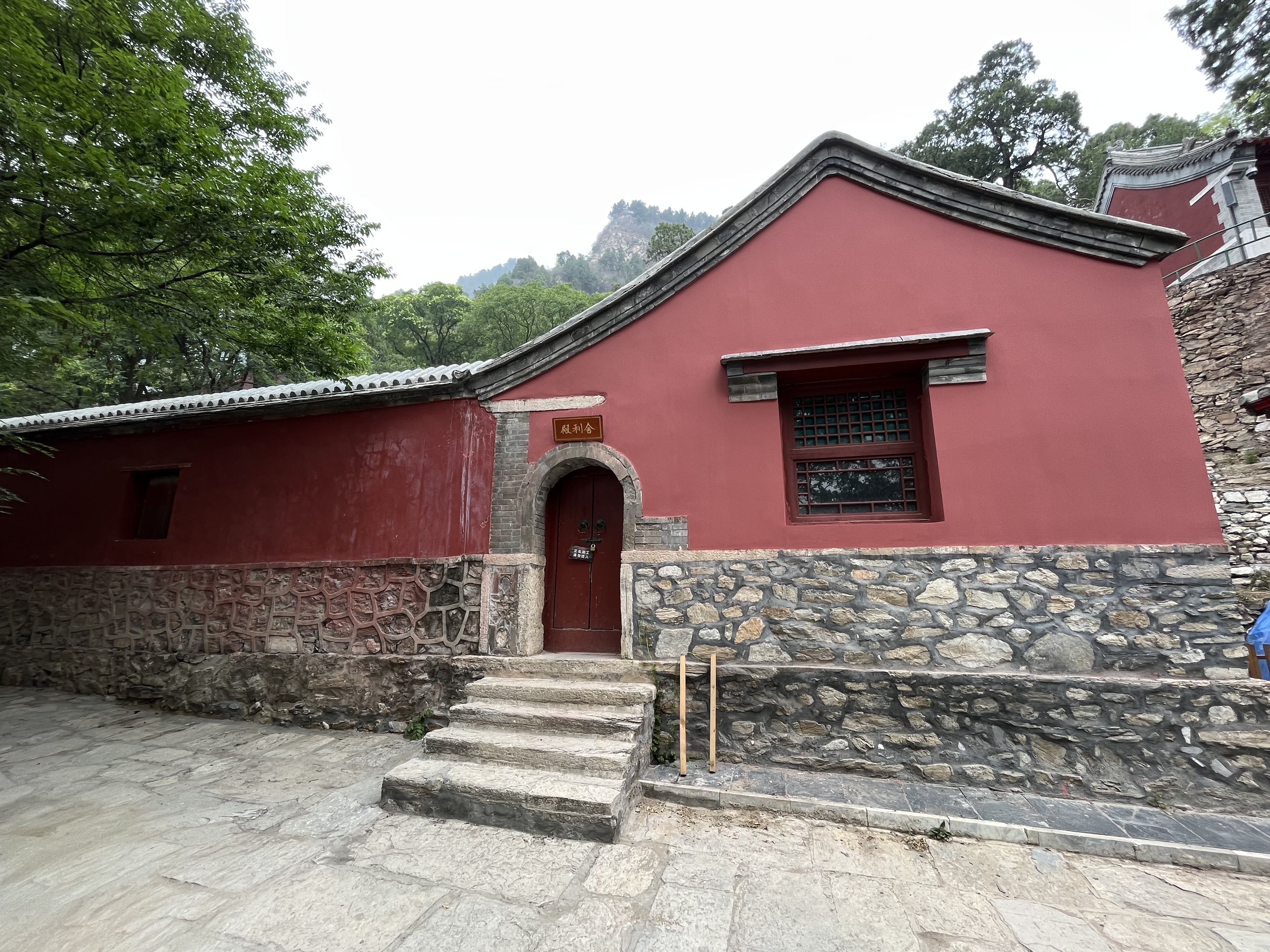 出兜率寺西行过舍利殿,路右一峰突起,这就是上方山十二峰之一的毗卢峰。峰上有石径穿林而上,寻径而攀,山门在望,一寺悬于峰腰,这就是毗卢殿。
