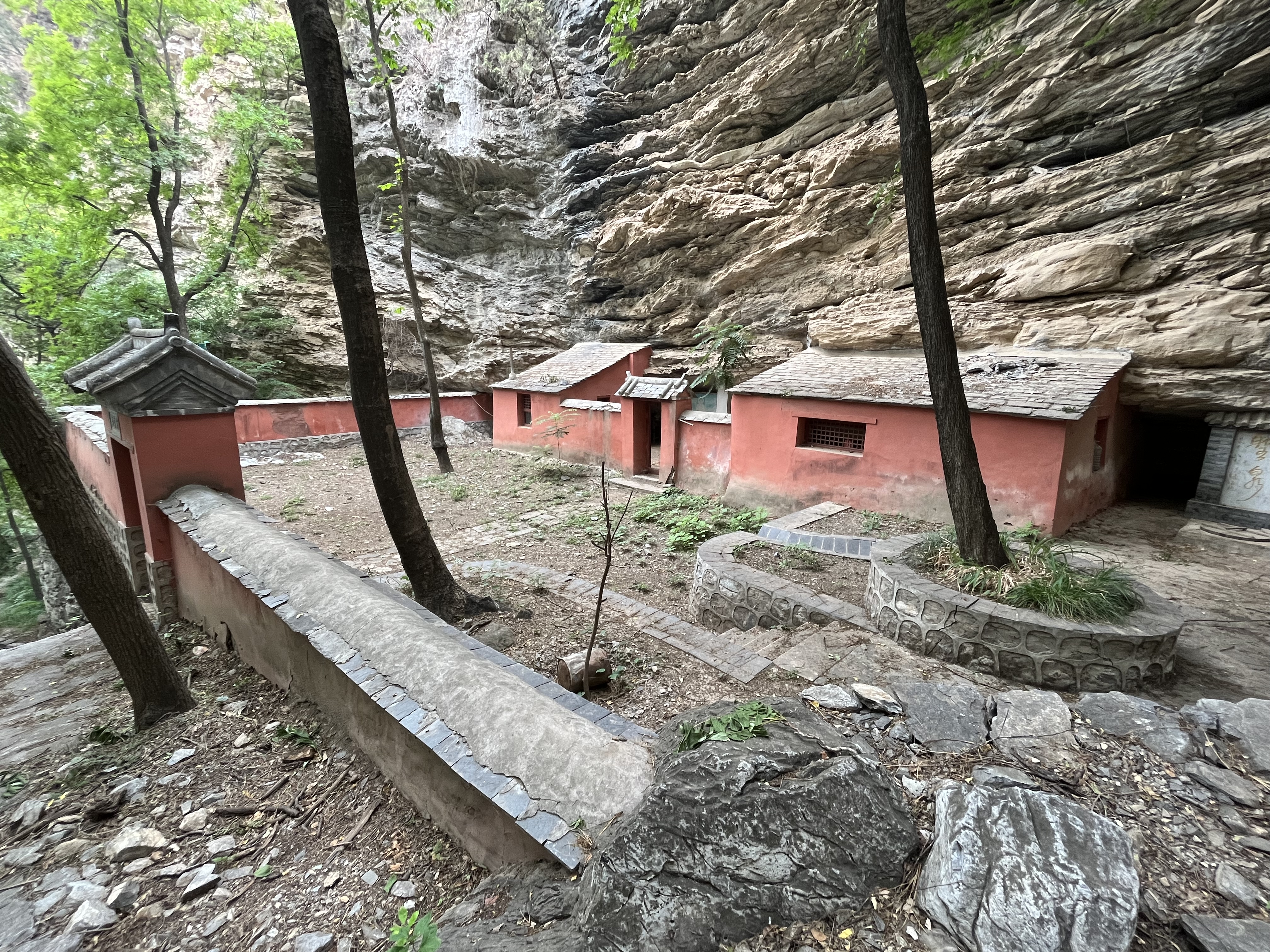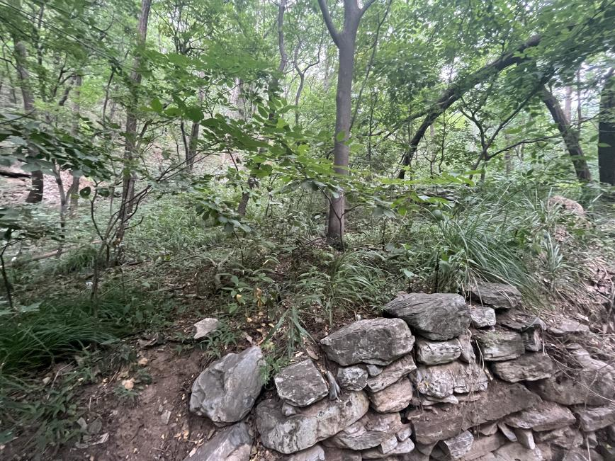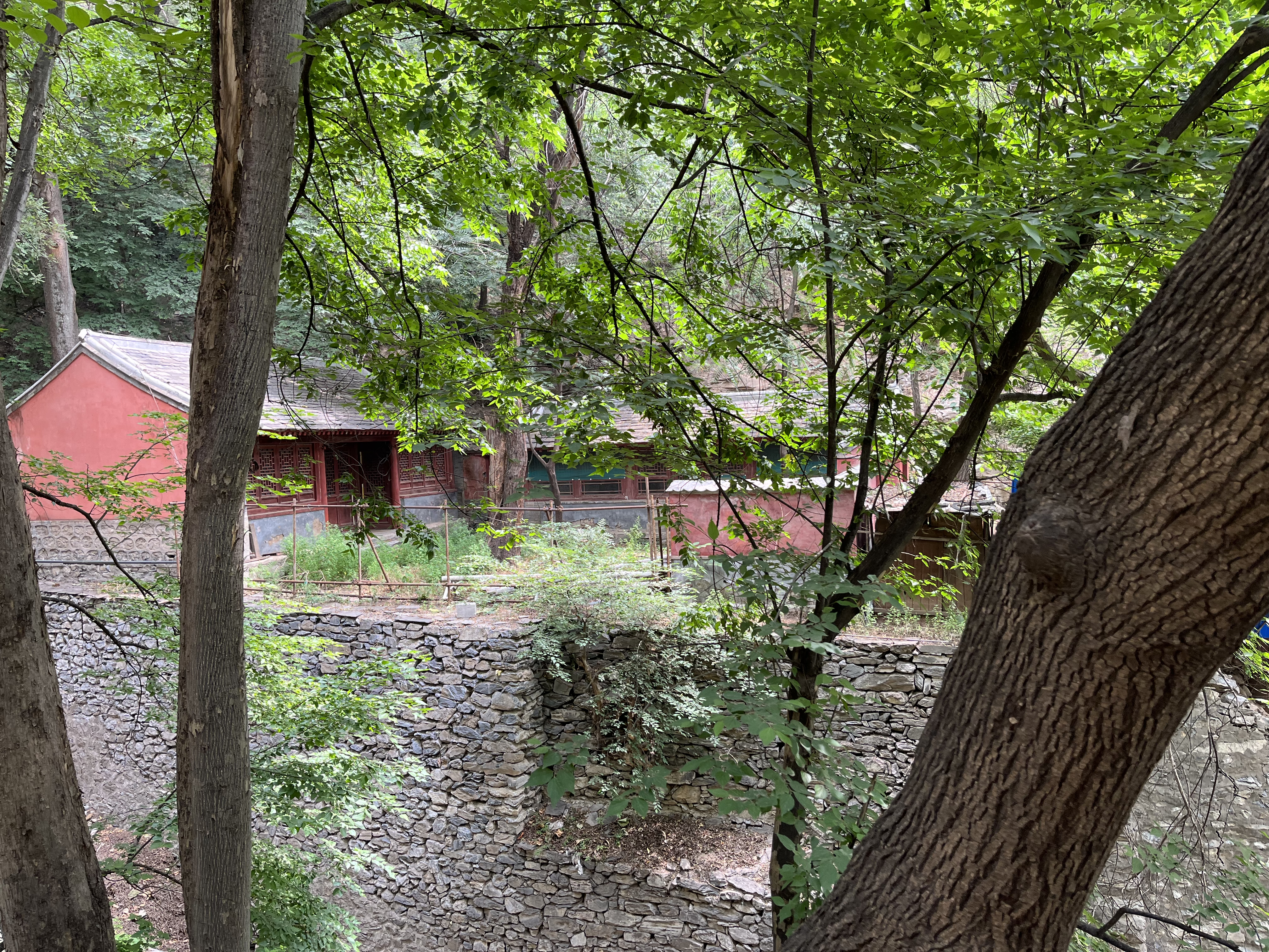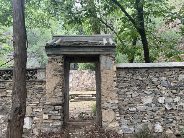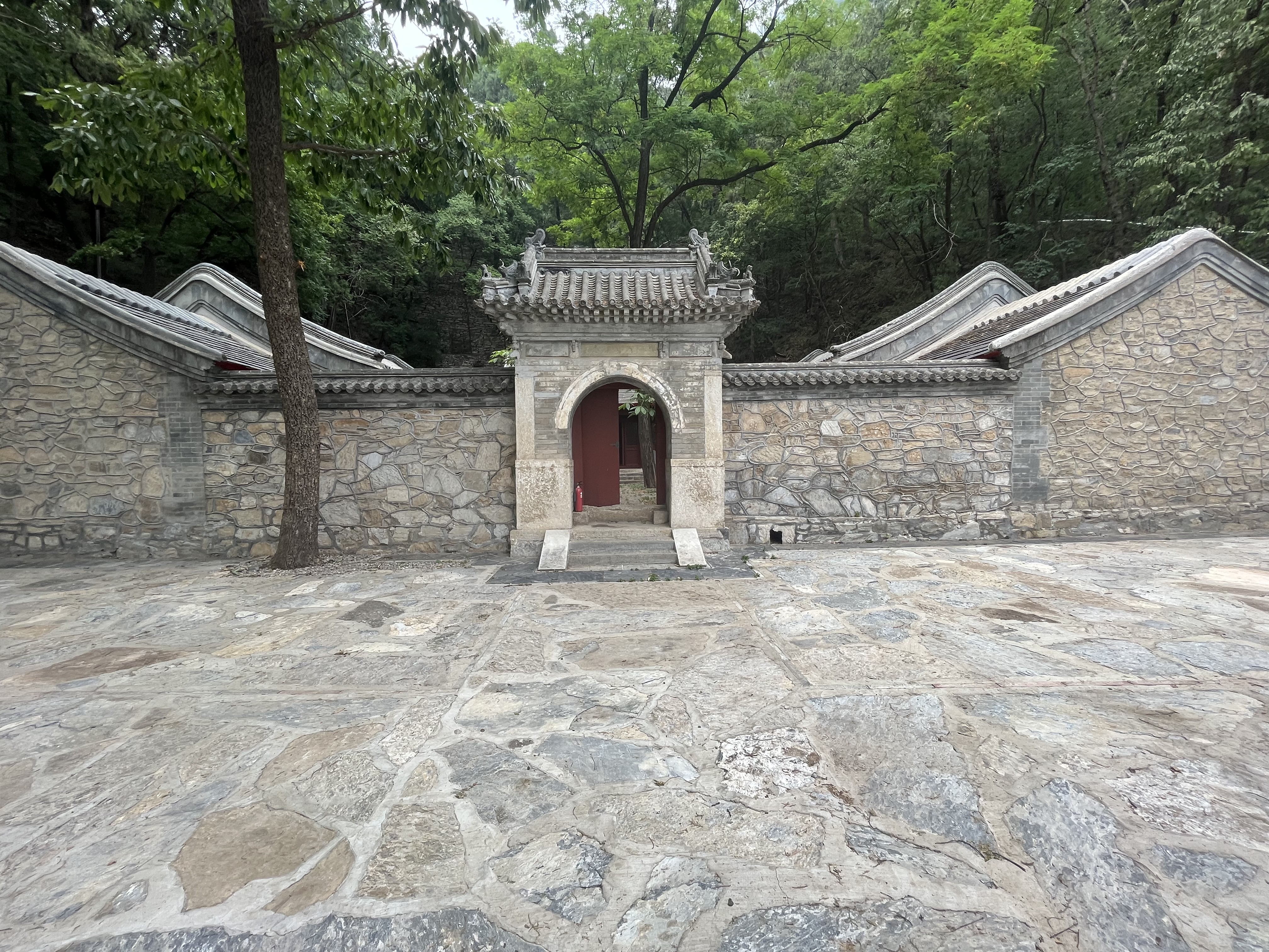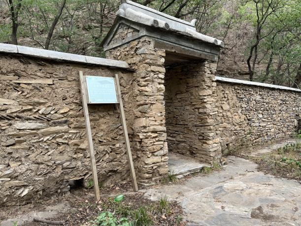 山门和院墙保存完好,山石垒砌,灰泥抹面。出净业庵,东有朝阳庵。