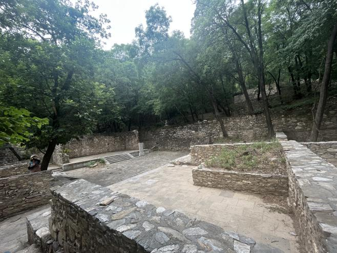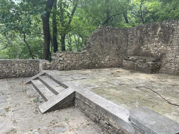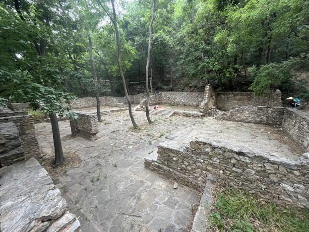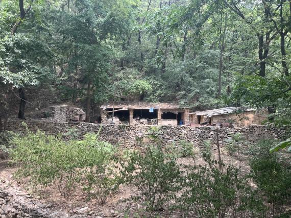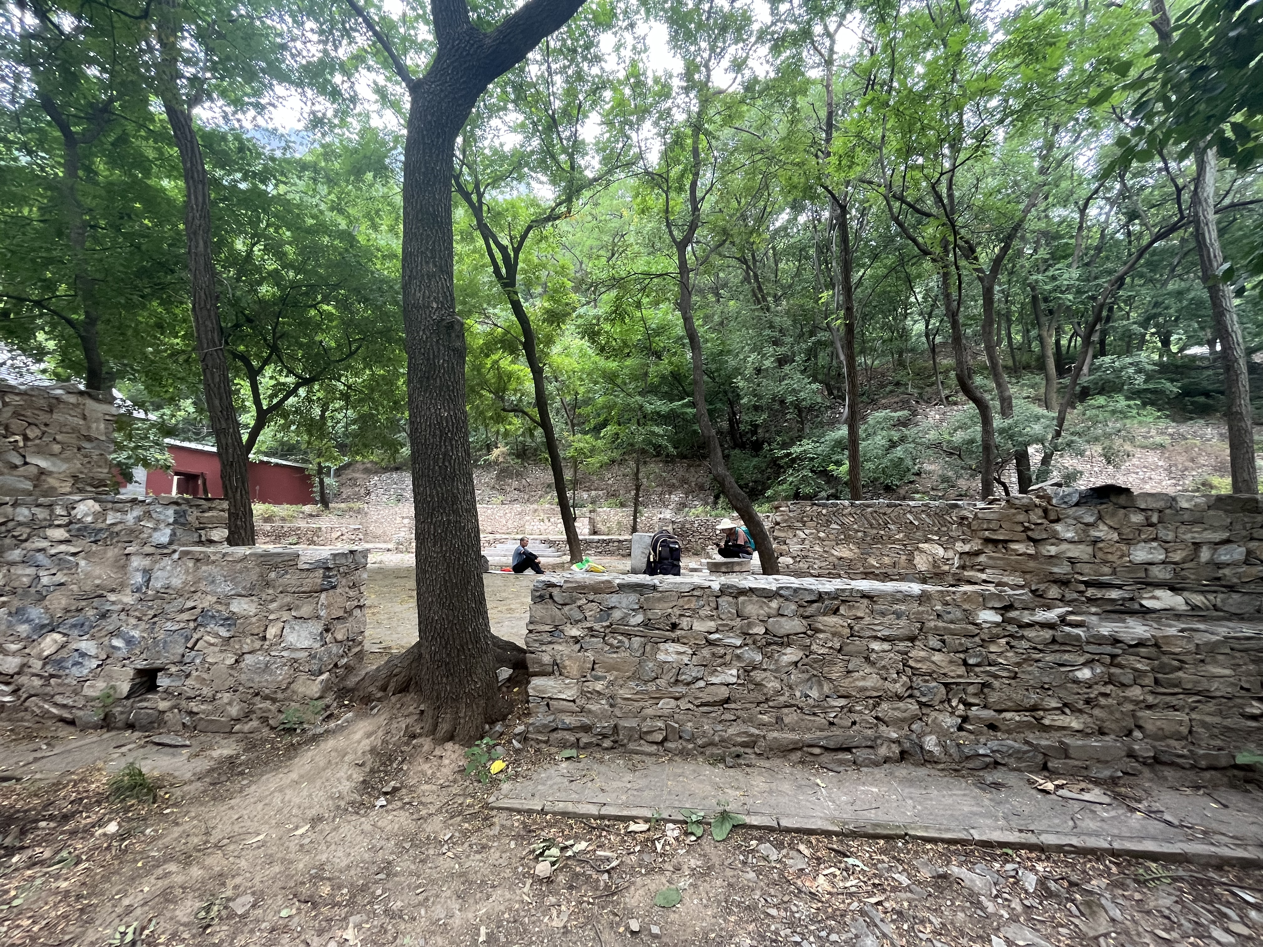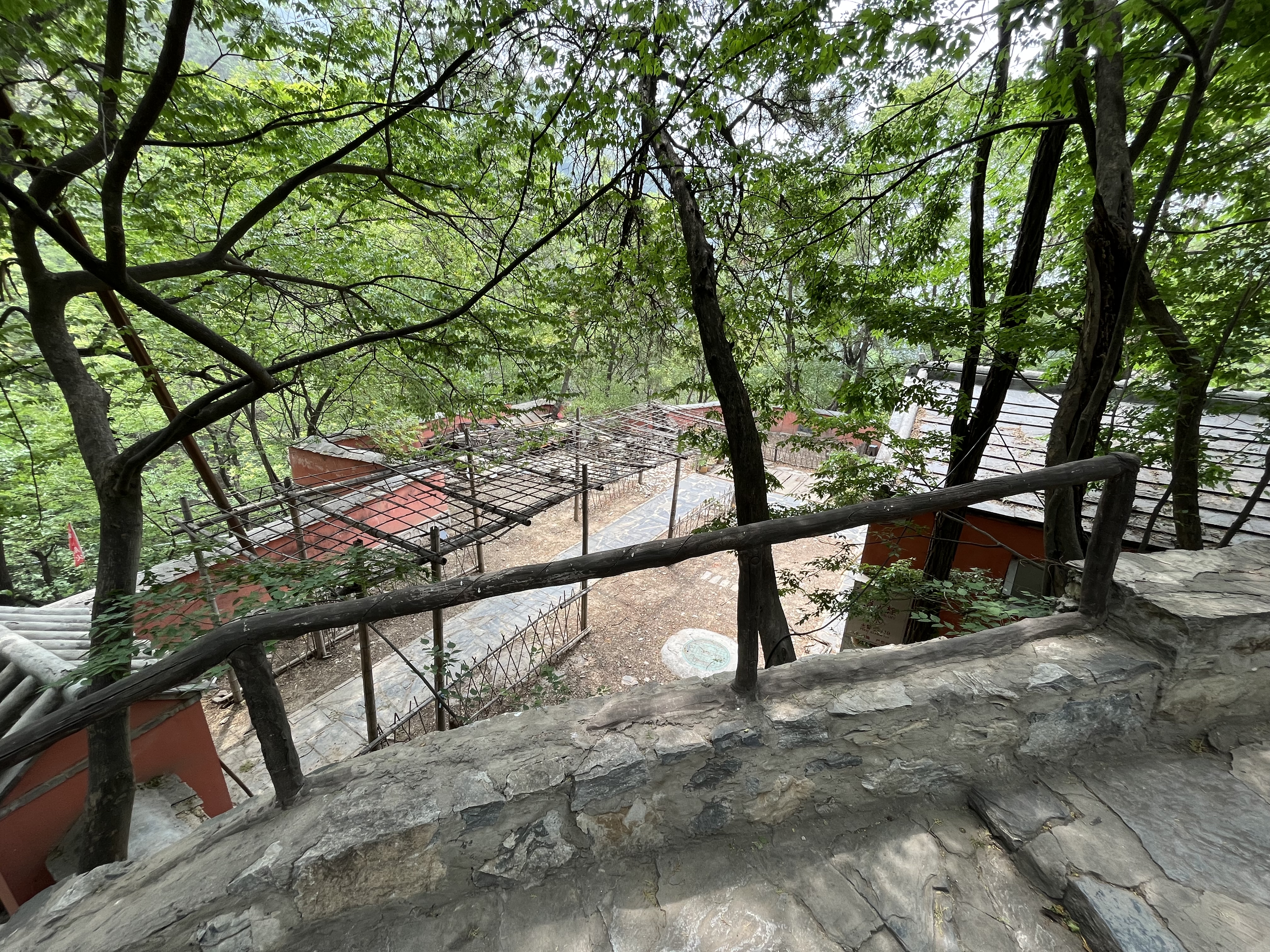 山门和院墙保存完好,山石垒砌,灰泥抹面。出净业庵,东有朝阳庵。