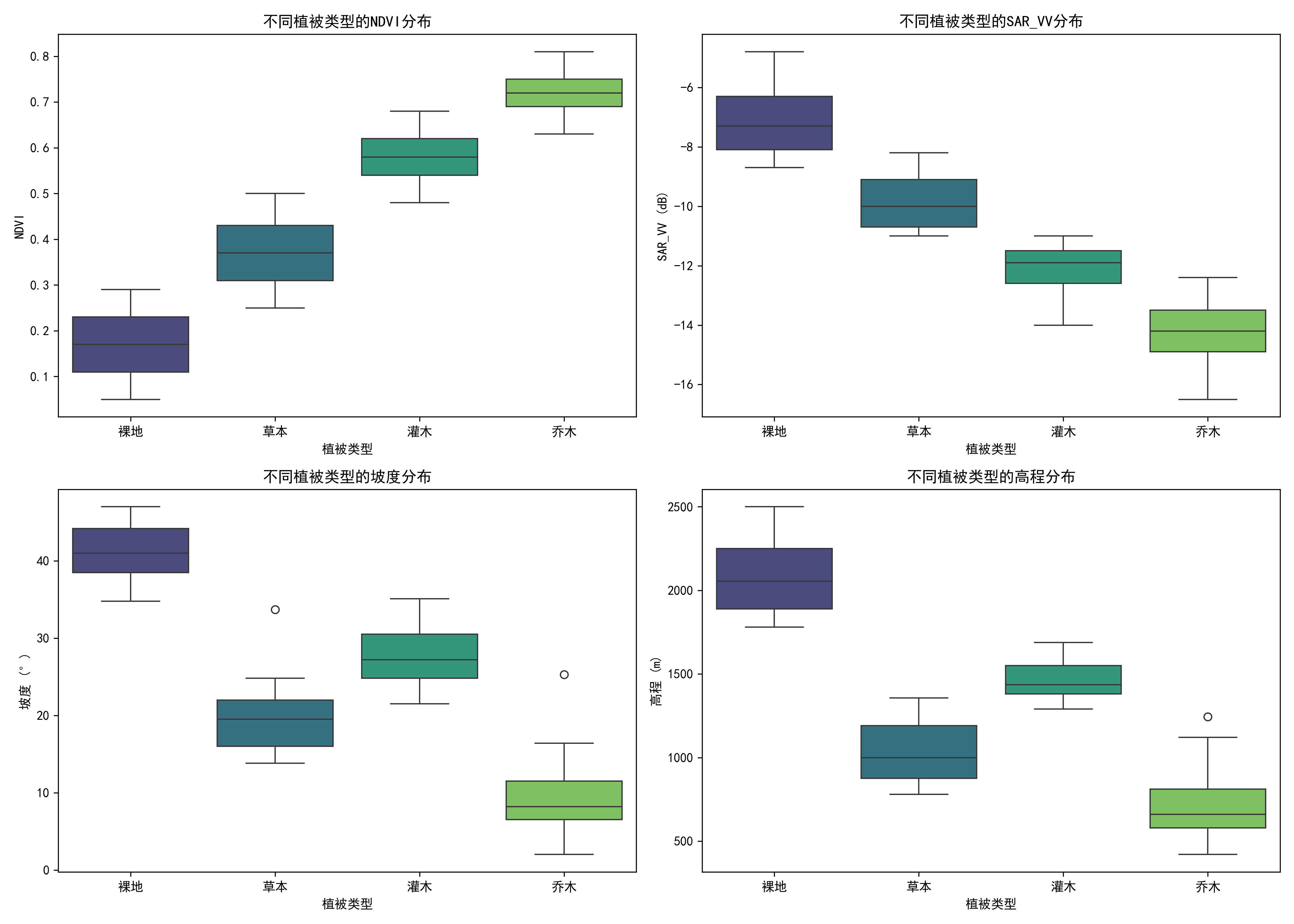 明确山地植被分布特征:基于遥感 OOP 分类技术,精准识别上方山地区植被类型(乔木、灌木、草本、裸地等)及其空间分布规律。 揭示植被与环境因子的关联:通过随机森林回归分析,量化植被分布与关键环境因子(如 NDVI、温度、湿度、坡度、土壤水分等)的相关性,明确影响植被生长的主要因素。 评估生态修复潜力:结合植被分布与环境因子分析结果,划分生态修复优先级区域,为针对性开展生态修复工作提供参考。 兼顾文旅开发适宜性:在保护生态的前提下,评估区域文旅开发潜力,为平衡生态保护与经济发展提供决策支持。